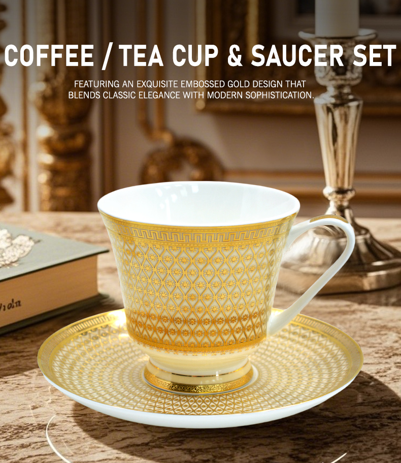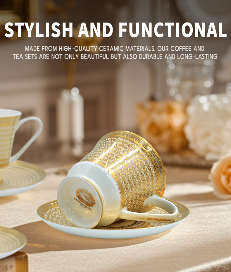 European Style Ceramic Coffee Cup Set,9.5 0z 280ml/cc Bone China Exquisitely Gold Afternoon tea Set for Women's TeaParty,Gift for Parents and Loved Ones