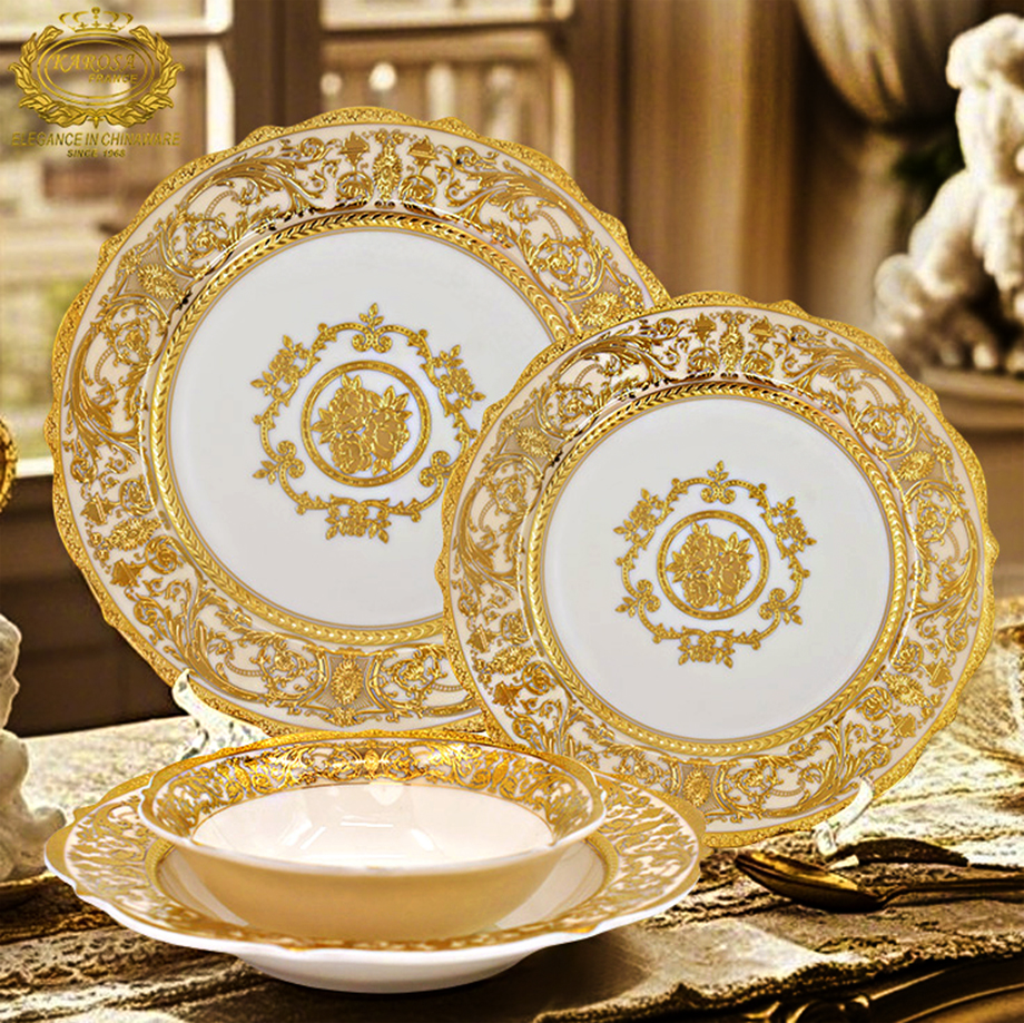 Luxury 24pcs Designer Royal Porcelain Dinner Set Bone China Ceramic Manufacturer Luxury Gold Dinnerware Set dinner plate set for 6 person